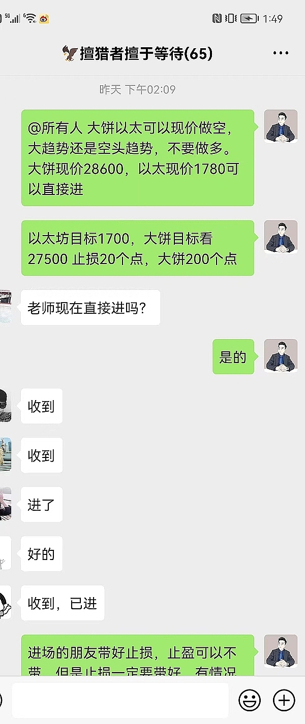 实盘群也是一样,让大家去做空,不要做多。首先趋势线,再者全球经济的影响导致整个市场情绪低迷。两者结合下来没有不让我们做空的理由,虽然震荡了很久但是趋势线没变我的思路也在坚持,也感谢实盘的朋友跟我一起坚持,拿到了想要的结果!