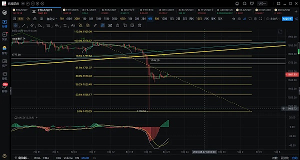 长路说币:8.21以太坊继续窄幅震荡,关注1700的压制