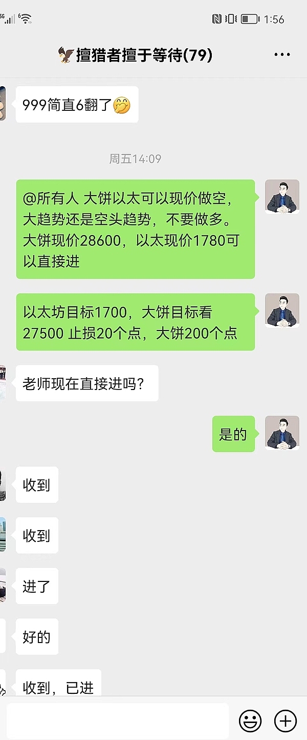 昨天发朋友圈也通知到大家回收上去了,并私信到大家,包括实盘群也是给到大家现价做多的单子。耐心持有等待方向走出即可!这波只是抓一波反弹的利润,重要的是日线趋势线依旧是空头趋势,所以不管是做现货还是合约的这波多单都不要太贪!实盘群老潇会实时通知到大家!昨天的单子目前小有盈利!