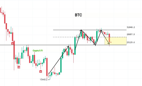 比特币上周这根大阴线量能是放量的,并且同时跌破了“长期上涨趋势线、颈线”两个重要的支撑,这也预示着比特币长达8个月的小牛行情在这一刻结束了,趋势已经改变。上涨趋势结束了,就会进入下跌趋势,牛走了熊就来了,熊走了牛就回来了,这是规律。