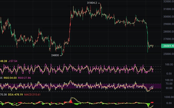 包括 Coinbase 在内的多家交易所的比特币跌至两个月低点 25300 美元。在接下来的几天里,它收复了部分损失,目前交易价格约为 26000 美元。