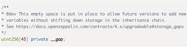 合约可升级性的另一个关键做法是在基本合约中包含一个存储“间隙”。逻辑合约则必须在合约代码中包含一个存储间隙,以考虑到在部署新的逻辑实现时可能引入的新变量。在添加新的状态变量后,更新“间隙”的大小就变得更加重要了。这种做法可以确保未来的升级能够顺利进行,不会出现问题。