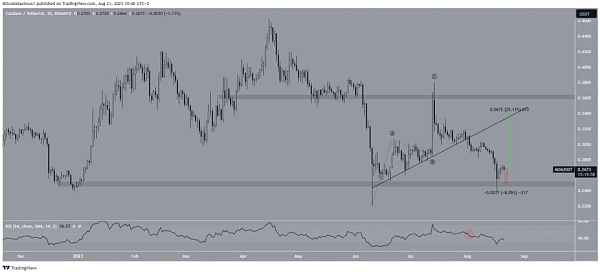 卡尔达诺(ADA)价格在8月份突破了上升支撑线,价格跌至年度低点,但随后反弹,确认了0.25美元的水平支撑区域。