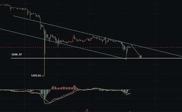 以太坊。早间再次插针失守1600,最低来到1575附近才有止泻,伴随前几日跳水修补之后,以太防守1600再次给到破位空间,大趋势修补动能渺茫。小时图BOLL通道抗跌即走平、但下挫加速的极端走法,下行通道或将延续,目前中轨承压凝重,早盘锤头大阴虽给到反弹修正,但李隆建议再次将高点下移,分批空进去即可,合理控制分批仓位。