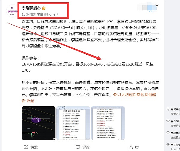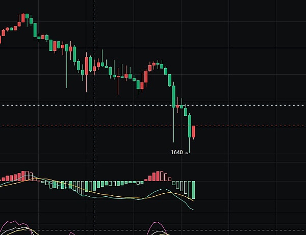 以太坊。再次如李隆所说,70附近压制明显,分批介入是最好的安排,目前最低已触及1640附近,只要方向对了,就不怕路远。点位依旧精准吻合,思路全网公开,入袋及时离场。