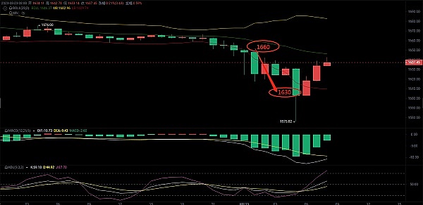 昨日以太坊短线止盈30余点,1660上方直接空,扫盈1630下方,关注东哥盘币稳健每天一两单,