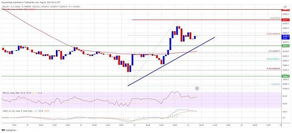 8.24比特币行情解析比特币价格回升小时图上看涨趋势线形成