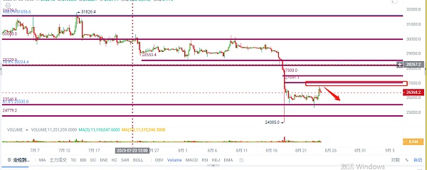 复盘:近期的行情都集中在晚上或者凌晨,白盘一直处于窄幅震荡,在凌晨大饼有走出V形状态 最低插针至25300附近,随后在晚间多头放量币价走出连阳拉升,最高来到26800附近,随后承压回踩,上方26800是短线关键压制位,布林带大张口的形态依旧没有得到任何改变,从日线图中能看到k线由阴转阳 正处于插针收线的实体阴柱附近,这个位置的压力依旧强烈 短期预计还会陷入一个窄幅震荡修复的过程, 目前多头的量能来看,并不已形成反转,整体行情行下行趋势并未转变 目前的反弹也只是纸老虎,我们需要等待指标跟随价格的步伐,以便继续向下突破和下跌。目前明显处于一个横盘修复的阶段,而短期的节奏也相当明显,低位来回波动,但由于空间有限且延续性不足,缺乏实质性突破和强劲的动能。因此针对这种弱势震荡结构,在承压时继续保持看空为主,