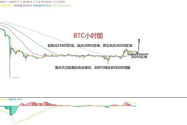 8月24日比特币(BTC)合约技术面分析:今日方面,大周期日线级别昨日报收中阳,K线形态上连阴单阳,价格还是处于低位震荡,附图指标死叉向下,即使说昨日价格反抽力度大了些,破位了前期的修正高点位置,但一定注意大趋势没有改变,这只是一次力度较大的反抽而已;短周期小时图昨日美盘价格冲高凌晨延续早间承压回撤后当前横盘整理,回撤的低点位置在26200区域附近,高点位置在26800区域附近,目前走势是震荡下跌但力度看不到,所以欧盘是重点,因此今日BTC短线合约交易策略:回撤26250区域多,止损26000区域,目标看26800-27000区域;