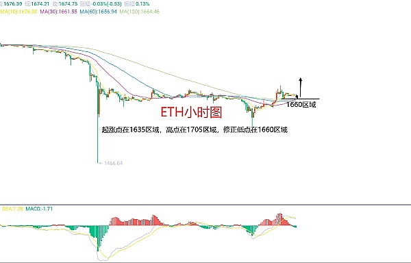 8月24日以太坊(ETH)合约技术面分析:今日方面,大周期日线级别昨日报收中阳线,K线形态上连阴单阳,而整体价格还是处于低位震荡,附图指标死叉向下运行,而昨日价格在美盘时间强势反抽且破位了前期修正的高点位置1696区域,今日早间承压回撤当前横盘整理,而附图指标死叉向下,这种形态是时间换空间的修正走势,看似日内有回撤,但实际看不到力度,长时间的震荡过后技术指标转换还是会延续上涨;因此今日ETH短线合约交易策略:回撤1660-1665区域多,止损1642区域,目标看1705-1715区域