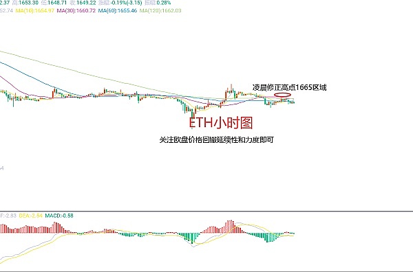 8月25日以太坊(ETH)合约技术面分析:今日方面,大周期日线级别昨日报收小阴线,K线形态上连阴下跌,附图指标死叉向下,价格处于低位整理,大趋势上下跌还是明显优势的,即使前面价格上涨破了修正的高点,昨日下跌基本抹平了上涨幅度;短周期小时图前一日价格欧盘承压回撤,但是没有破地点晚间以及凌晨修正的高点在1665区域附近,当前二次承压向下,K线形态连阴,附图指标死叉向下,所以日内还是会跌,需要关注的是力度和破位;因此今日ETH短线合约交易策略:现价165区域空,止损1668区域,目标看11615-1605区域;