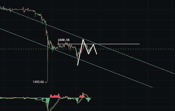 以太坊。昨日白盘弱势酝酿,晚间空头有所发力,李隆昨日唱空看至1640附近更是直接插穿,可见低点仍在蓄力。小时图来看,BOLL通道再次收口向下运行,价格目前反复试探欲站稳中轨,上根倒垂阴线略显强势,短线有小幅反弹迹象,但附图指标偏弱不变,今日操作上,李隆建议先静候反弹,不博逆势单,再分批空进去即可。