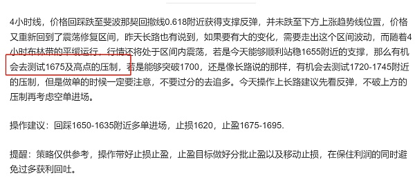 昨天长路在文中和视频都有讲到,可回踩做空,有机会去测试1675附近的压制,结合实时策略,跟上操作的朋友,多空都有收获。