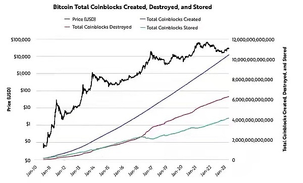 “Coinblocks是比特币数量和该比特币保持不活跃期间产生的区块数量的乘积。”