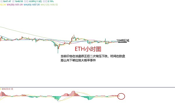8月26日以太坊(ETH)合约技术面分析:今日方面,大周期日线级别昨日报收小阴线,K线形态上连阴下跌,附图指标死叉向下,价格运行于均线下方,大趋势下跌明显,但是其中需要注意的是短时间的价格反复洗盘的节奏,加上周末尽量还是短线交易;短周期小时图昨日价格在美盘冲高回落却没有延续,凌晨走了横盘修正的走势,当前承压二次回撤,K线形态连阴,附图指标有即将死叉迹象,那么这样来看日内以及欧盘价格大概率要向下破低的;因此今日ETH短线合约交易策略:现价1648区域直接空,止损1665区域,目标看1615区域;