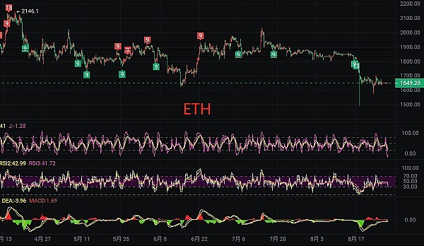 以太的行情回撤的幅度并不是很大,直接就反弹,不过依旧是处于箱体区间内来回走,不过夜里的反弹并没有走出太大的区间,下方的支撑依旧是在1630附近,针对短期的相对疲弱走势,整体走势还是偏向下行的,我们在今天的交易中需要特别关注周初反弹的压制情况,如果无法有效突破则继续看回落。其次,我们还需要注意上方反弹高点1680附近的情况,如果无法有效突破该位置,则继续看回落。