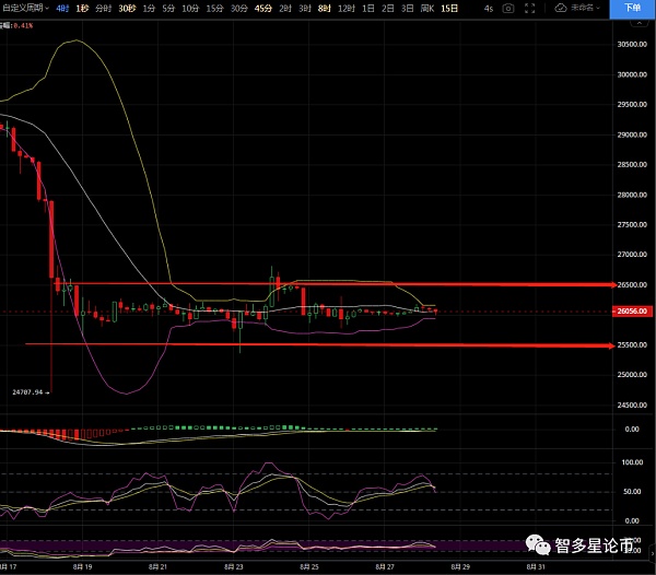 消息面重点关注本周五美国公布非农数据,虽然近期非农对币价影响低于预期,但也不排除此次会议公布后带来的影响波动币价未来走势!技术面4小时布林带线缩口在运行,K线也是一直横于中轨位置,表明币价有可能走出震荡,迎来上涨或下降空间,目前并不明朗!每一次缩口都预示要变盘,因为缩口后就会开口,所以缩口时要注意中轨的方向与币价的位置。但白盘有较大可能性继续横盘整理,看晚盘走出空间,KDJ三线有拐头向下的趋势,预示后市将迎来回踩,RSI三线一直处于30-70区间运行,走不出明显的走势,MACD双线一直处于0轴下方运行,多头量能也在走缩量运行,盘面亦是看空!但整体任然是区间为主,操作上看低多为主,高空为辅即可。