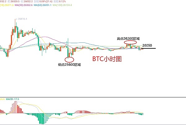 8月28日比特币(BTC)合约技术面分析:今日方面,大周期日线级别昨日报收小阳线,价格还是运行于均线下方,附图指标死叉向下,时间上是周末的收阳,那么也就是修正的一种了,且整体价格没有太大变化,反抽回撤反复洗盘,时间修正而已;短周期小时图昨日美盘时间价格小幅反抽高点位置在26200区域附近,今日早间承压回撤,当前价格运行于均线下方,K线形态打阴小阳,附图指标死叉向下且四小时图价格明显被压制,所以可以把凌晨的横盘看作修正,今日日内还是要跌;因此今日BTC短线合约交易策略:现价26050区域直接空,止损26200区域,目标看25750-25600区域;