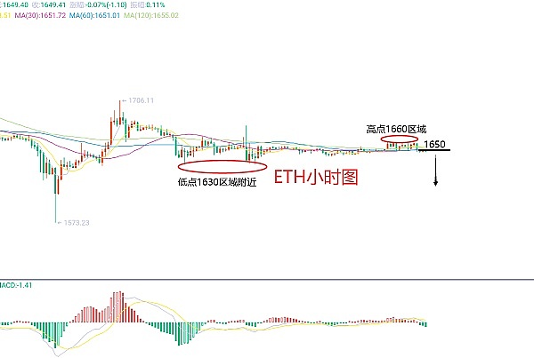 8月28日以太坊(ETH)合约技术面分析:今日方面,大周期日线级别昨日报收小阳线,K线形态上连阴单阳,附图指标死叉向下,大趋势还是下跌明显;而昨日收阳时间在周末,就是修正的一种,这种走势近期表现很多,例如小时图的指标跑得飞快,价格不动,这就是典型的时间修正走势;短周期小时图前一日美盘时间反抽高点在1660区域附近,今日早间价格承压回撤,目前K线形态连阴下跌,附图指标死叉向下,日内要跌的;因此今日ETH短线合约交易策略:现价1650区域空,止损1665区域,目标看1620-1615区域;