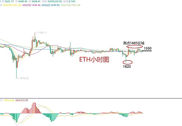 还是说说走势方面的问题,周线级别下跌非常明显,K线形态连阴,附图指标死叉向下,但是由于周期性比较大,所以不适合短线交易去参考实时操作;日线级别昨日还是收阴但有长下影线,价格向下破位前一日低点后支撑反弹,没有延续向下,这是老问题,我们要注意;昨日操作现价给出BTC26050区域空和ETH1650区域空,分别止盈25850区域和1620区域,跟上的朋友吃肉,本周第一天开门红。