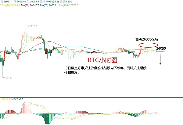 8月29日比特币(BTC)合约技术面分析:今日方面,大周期日线级别昨日报收小阴线,K线形态上连阴下跌,附图指标缩量运行,价格还是在均线下方,但昨日的探底支撑反抽就影响了延续性的问题,大趋势明显下跌只是延续和力度比较差,所以交易还是只能短线,利润也还是不错的;短周期小时图昨日日内价格震荡下行且欧盘时间破位前一日低点位置,美盘反抽修正高点还是在26300区域附近,今日早间二次承压回撤,当前K线形态连阴,附图指标油死叉迹象,那么日内还是会出现探底的走势;因此今日BTC短线合约交易策略:现价26050区域空,止损26300区域,目标还是25750-25600区域;