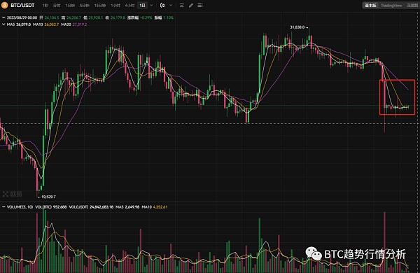 从比特币的ma技术线来分析,目前5MA和10MA的已经形成了交汇,但30MA的趋势依然在下探,所以近期横盘之后比特币持续下跌的可能性是非常大的,目前建议粉丝们和币友们可以先观望,做合约的还是跟昨天一样可以继续做跌设置止盈点即可,今天的分析到此为止,明天再见