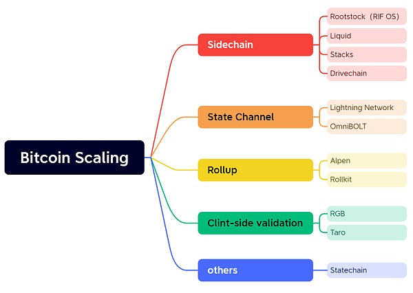 2012年,染色币(Colored Coins)风靡一时,其利用了比特币区块链,旨在为特定比特币“着色”以将其与其他比特币区分开来,目标是利用比特币及其现有基础设施进行非货币交易。尽管彩色硬币从未完全独立发展,但它们激发了当今广泛使用的新技术。2017年,SegWit(隔离见证)升级激活,将区块空间扩容到 4MB,从而提高了交易吞吐量。直到2018年,开发者逐渐推出闪电网络( Lightning Network )和侧链(Sidechains) ,比特币L2由此走进大众视野。2021年的Taproot升级又带来更安全、高效、私密的比特币。今年,BRC-20 协议的出现进一步丰富了比特币的相关生态。当前比特币生态中,较为主流的协议包括侧链和闪电网络。随着比特币网络上的交易量越来越多,如何让比特币承载更多的交易和生态是目前主要的发展方向,无论是闪电网络、侧链还是RGB协议,比特币Layer2的发展也在持续进行,最终达到比特币网络安全性和可扩展性的兼容。