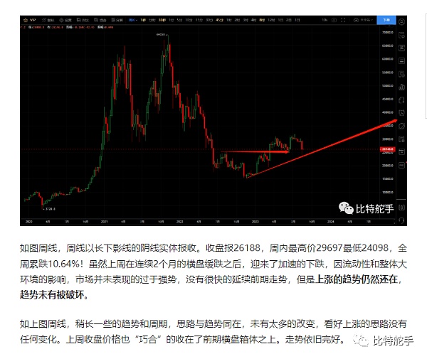 如图比特币周线,在数据刺激之下,价格加速探底,这对于空仓待买的投机者是极大利好。前面一波从24800到31800,完美止盈。盘中出现了反转信号,舵手盘中直接提示了价格的反转,流动性不足,市场波幅缓慢,价格再次经历了近10周的缓跌。曾经这样的2波行情不过是日内或者2个交易日即可走完,现在需要半个月甚至一个月...