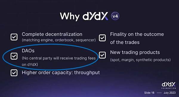 有多个迹象表明 v4 后 DYDX 代币将 100% 累积手续费。