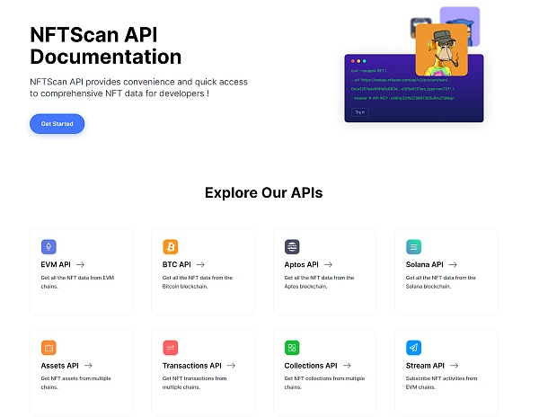 在成功注册开发者账号获取 API Key 后,您需要查看 NFTScan API 文档。API 文档包含了所有可以使用的 API 端点和参数,以及如何构建请求和处理响应的详细信息。请认真阅读 API 文档,并确保理解如何使用 API 来获取您需要的数据。NFTScan API 服务致力于帮助开发者改善获取 NFT 数据分析体验。