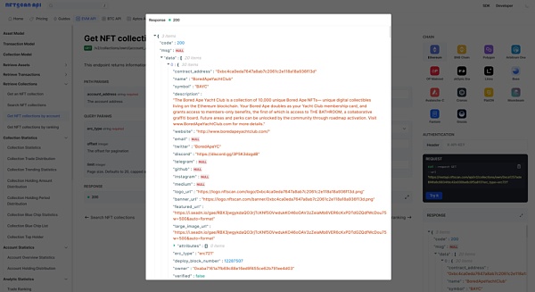 不同时间段的交易和活跃度进行对比不仅可以发现交易机会,其中 NFT Collection 持有者信息更能支持对用户群体进行划分,实施精准营销;除此之外,全面的数据支撑可视化呈现,丰富应用的展示内容和用户体验。利用强大的 NFT API,开发者可以基于海量数据进行建模和预测,制定智能投资策略。可以说,获取完整、准确的 NFT Collection 数据,对于开发者研究 NFT 市场,进行数据驱动决策,以及开发创新应用都具有重要价值。