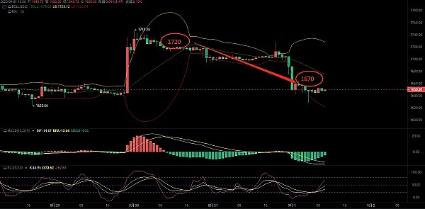 8.30早间分析,早间1720上方直接空,晚间扫盈1670下方,,以太坊止盈50余点,每天稳健一两单,实力全网公开关注东哥盘币。