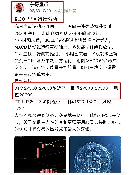 8.30号 早间给出分析,早间27500直接空,晚间扫盈27000下方,大饼止盈500余点,每天稳健一两单,实力全网公开关注东哥盘币。