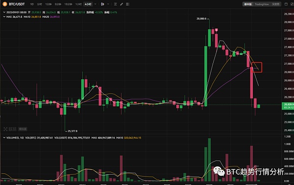 比特币目前的支撑位只在25700美金,如果跌破这个数值,那么之后的行情会连续跌可能会跌破到24000以下。