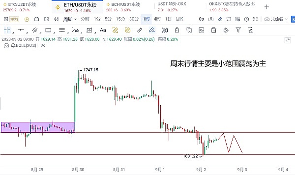 ETH:1645附近空,1610附近做多,合理设置止盈点。