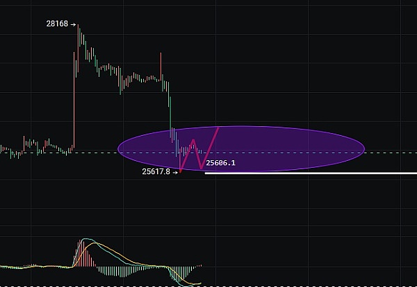 大饼。昨晚插针27600附近极端下挫,早盘跌至25600才有所止泻,单边2000余点的跌幅着实大跌眼镜。目前币价重回26000附近横盘整理,小时图持续再走连阴框架,而早间单针探低却阳线收回,趋势上仍有修补空间,但主图均线压制仍需攻克,看晚间能否给到动能修补,今日非农,李隆建议大饼仍待回踩,再尝试去多一次,进场切记做好分批计划。