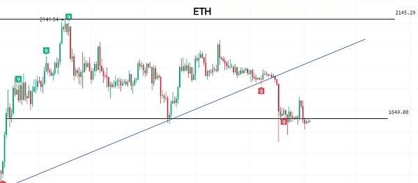 以太坊四小时在经历一波下跌之后,开始反弹,接下来的走势,下跌的概率比较大。1、下跌的低点和反弹的高点画一个震荡区。2、见底后开始反弹,出现带上影线的阳线,说明上方遇到了压力。3、今天早间小时线形成了一个看跌吞没,看跌吞没属于反转信号,说明反弹结束。4、看跌吞没之后,缩量反弹,说明多头反弹无力。5、反弹价格没有上去,说明上方的压力很大。通过以上可以看出来,这波的短线反弹结束,接下来大概率会下跌。