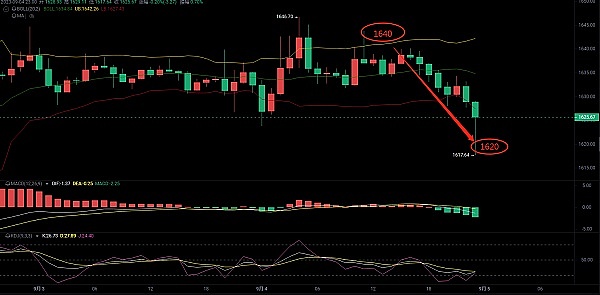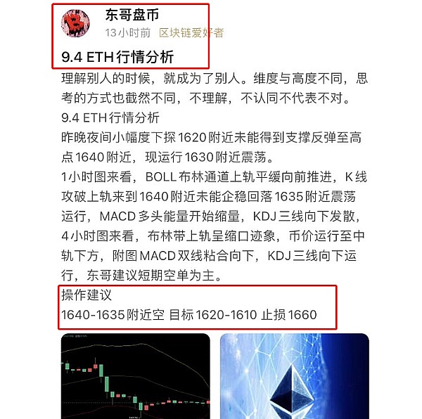 9.4早间分析,早间1640上方直接空,晚间扫盈1620下方,以太坊止盈20余点,每天稳健一两单,实力全网公开关注东哥盘币。