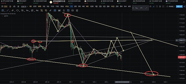 ETH白盘操作建议看反弹,进场区间1615-1620 目标看1660压力 防守1600