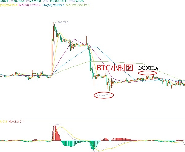 9月6日BTC合约技术面分析:日线小阴,价格在均线下运行,附图金叉缩量。支撑25300,阻力26200。小时图波动有限,高点阻力26000,低点支撑25300。短线策略:空25750,止损26050,目标25300-25150。