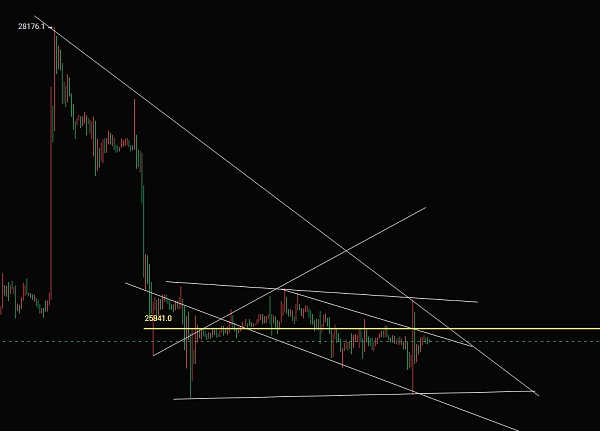 大饼短期来看,总体走势相比较以太来说有点疲软,跌幅空间大于以太,凌晨最低回踩到了25350,以太最低才到了1608,反弹还比较不错,再次试探了26000的关口,企稳还是目前面临的最大问题