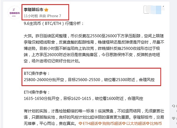 大饼思路再次见证,李隆日内有所强调,25800上方直接分批开空,目前最低触及25500附近,点位依旧精准吻合,盘中理性稳健取舍。李隆聊后市,交易无难事,平心而论,贵在真实。