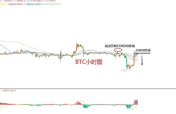 9月12日比特币(BTC)合约技术面分析:今日方面,大周期日线级别昨日报收中阴线,K线形态连阴单阳,价格运行于均线下方,附图指标金叉缩量运行,当前的问题还是延续性以及力度的问题,昨日价格承压回撤,欧盘破低,美盘延续,凌晨修正后今日日内价格反抽且力度大了,基本抹平了跌幅,这样来看还是在洗盘的节奏当中;短周期小时图昨日回撤低点位置在24900区域附近,而开跌口位置在26050区域,当前价格支撑反弹,时间在欧盘价格没有破高,最多不合适,因此今日BTC短线合约交易策略:现价25850区域直接空,止损26100区域,目标看25500-25300区域;