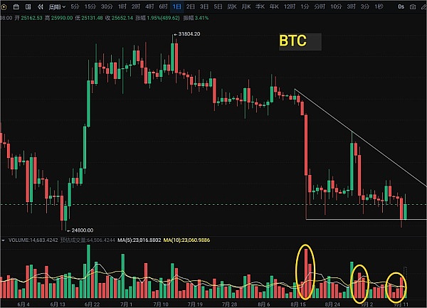 第三,多方力量强烈守卫在25000美元附近,试图维护这一关键水平。