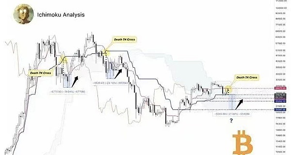 此分析使用 Ichimoku 视角来检查比特币价格图表中看到的 Tenkan Cajun (TK) 死亡交叉。