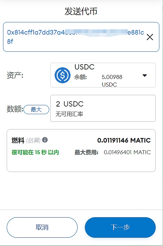 5.去小狐狸钱包转账,转账20u,金额越大奖励越多