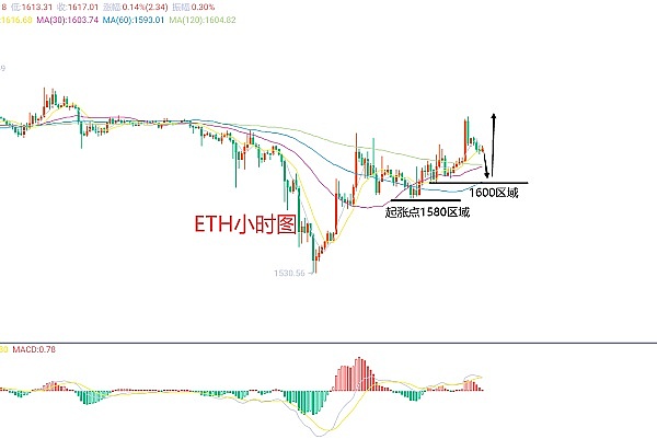 9月14日以太坊(ETH)合约技术面分析:今日方面,大周期日线级别昨日报收小阳线,K线形态上连阳上涨,附图指标金叉开始放量运行,这样来说今日我们还是要去尝试看延续的走势,热线连阳,而需要注意的还是走势规律,欧盘的强弱依旧还是关键,因为日内基本会横盘不动。短周期小时图昨日欧盘价格支撑反弹,起涨点位置在1580区域附近,而反弹的高点位置在1640区域附近,当前K线形态上冲高回落,连阴下跌,附图指标死叉,所以日内有回撤的需求,因此今日ETH短线合约交易策略:回撤1595-1600区域多,止损1580区域,目标看1635-1650区域;