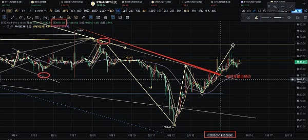 ETH今日操作策略还是低多为主 多单进场的最佳点位还是1610-1615附近