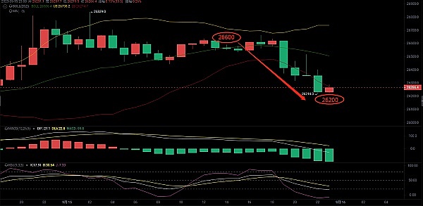 大饼早间26600空单,晚间达到26200,斩获400点。