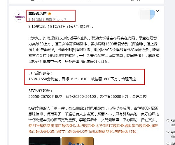 以太坊。周一早盘再次给力,周末李隆强调反弹无力,围绕38去分批空,1600关口再次精准失守,点位依旧精准吻合,盘中理性稳健取舍。李隆聊后市,交易无难事,平心而论,贵在真实。